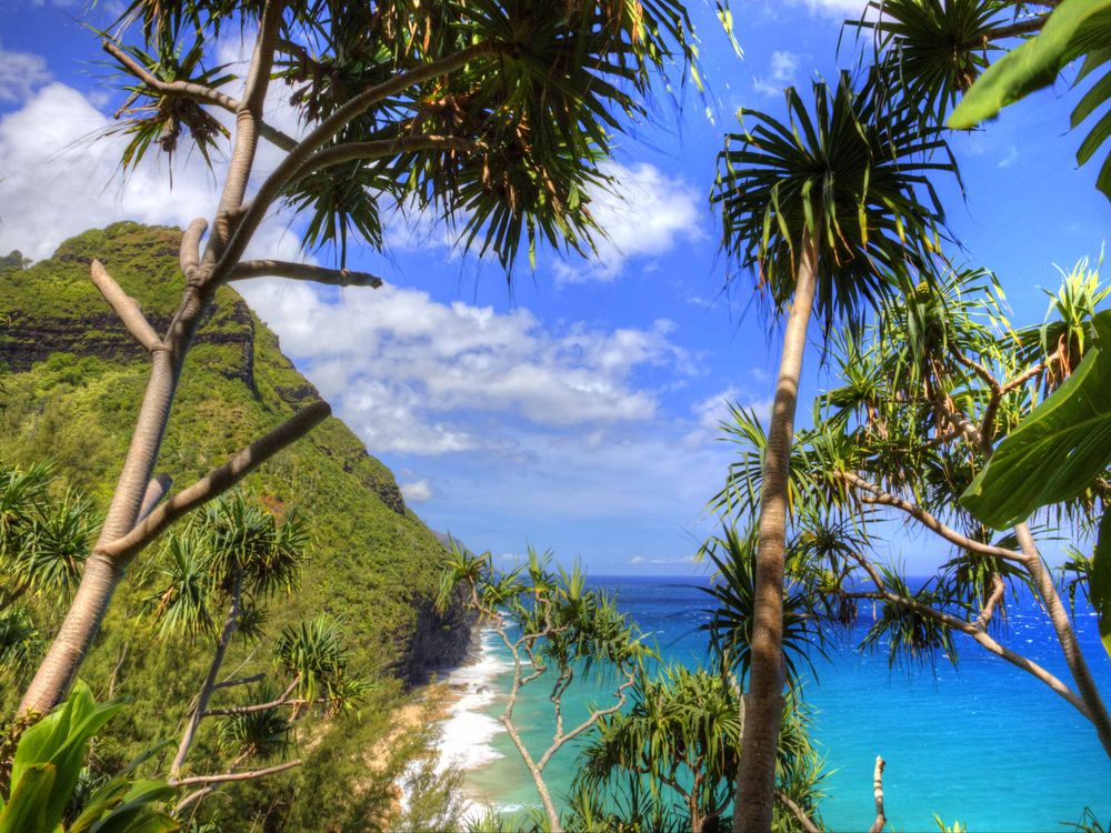 Secluded Beach off the Kalalau Trail. The trees in the foreground really set the scene nicely.