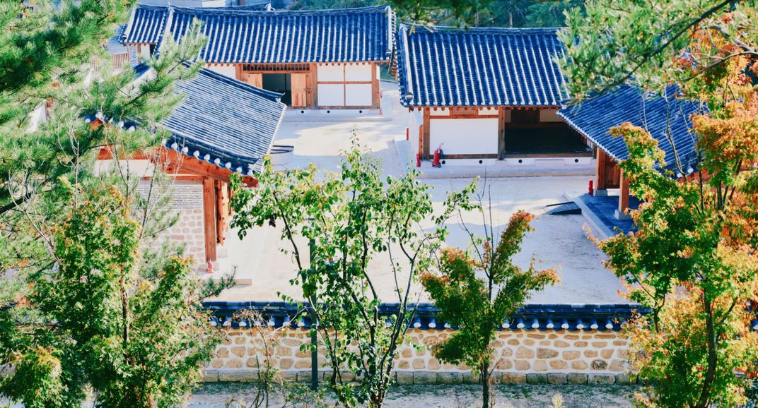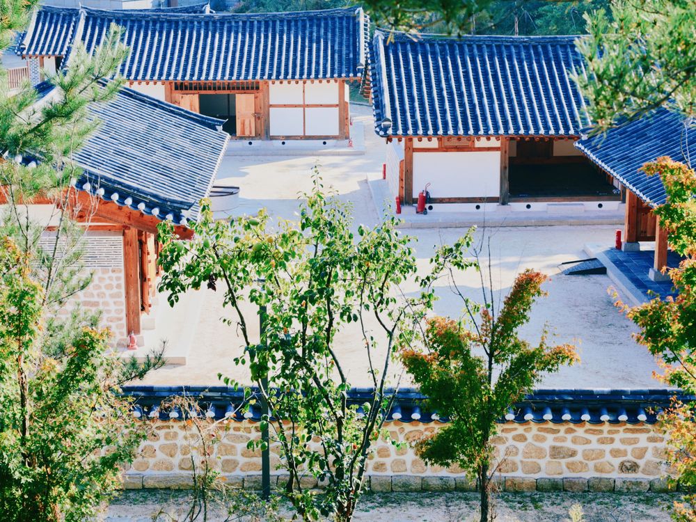 While wandering through central Seoul, I discovered this serene palace courtyard hidden among autumn foliage. Captured from an elevated viewpoint, the traditional Korean architecture with its blue-tiled roofs and white walls creates a peaceful sanctuary in the heart of the bustling city. The vibrant autumn colors and pine trees embrace the courtyard like a secret garden, revealing the timeless beauty of Korea's royal heritage that quietly coexists with modern Seoul.