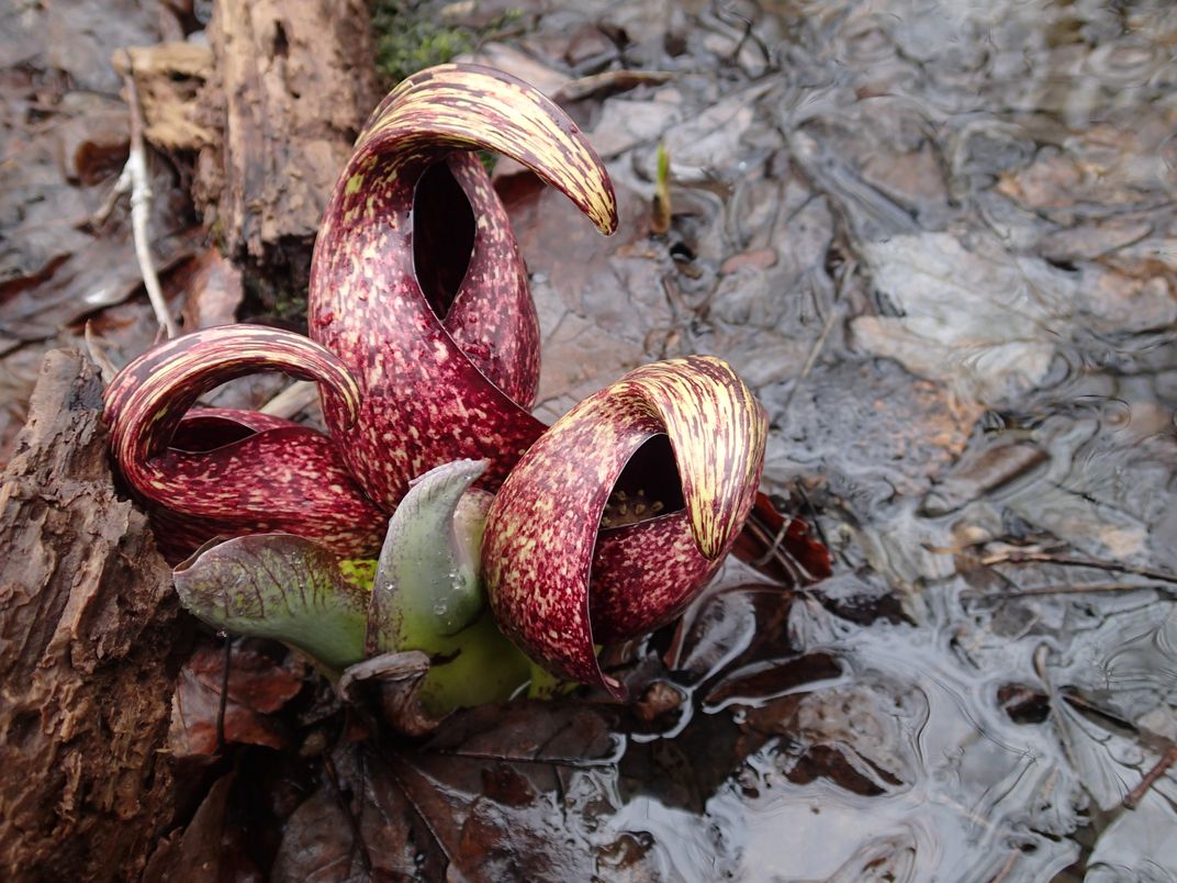 I took this photo of symplocarpus foetidus, a plant native to New England while hiking in the woods on Beautiful Aquidneck Island.