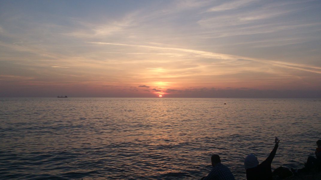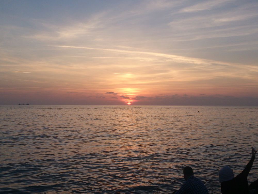 Stunning sunset view, while someone is taking a selfie phote with her mobile.