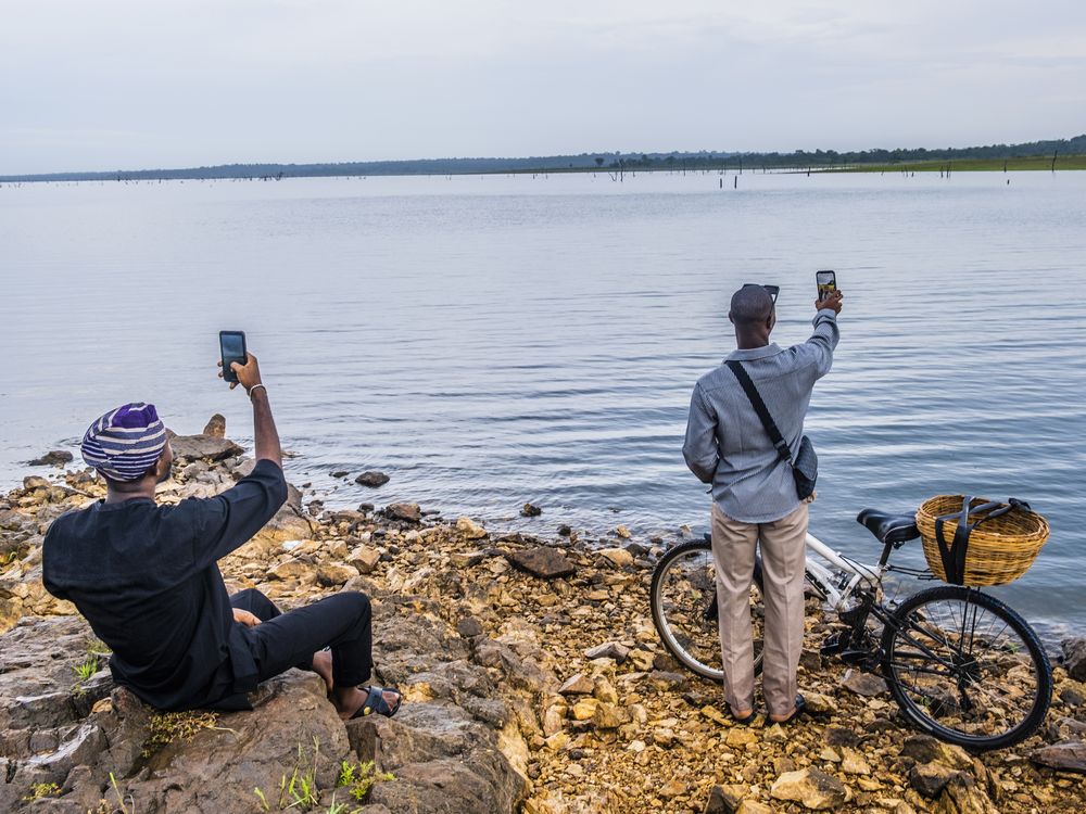 The image shows two tourist by the popular Owala Lake in Oba Oke Osun state Nigeria taking a selfie,