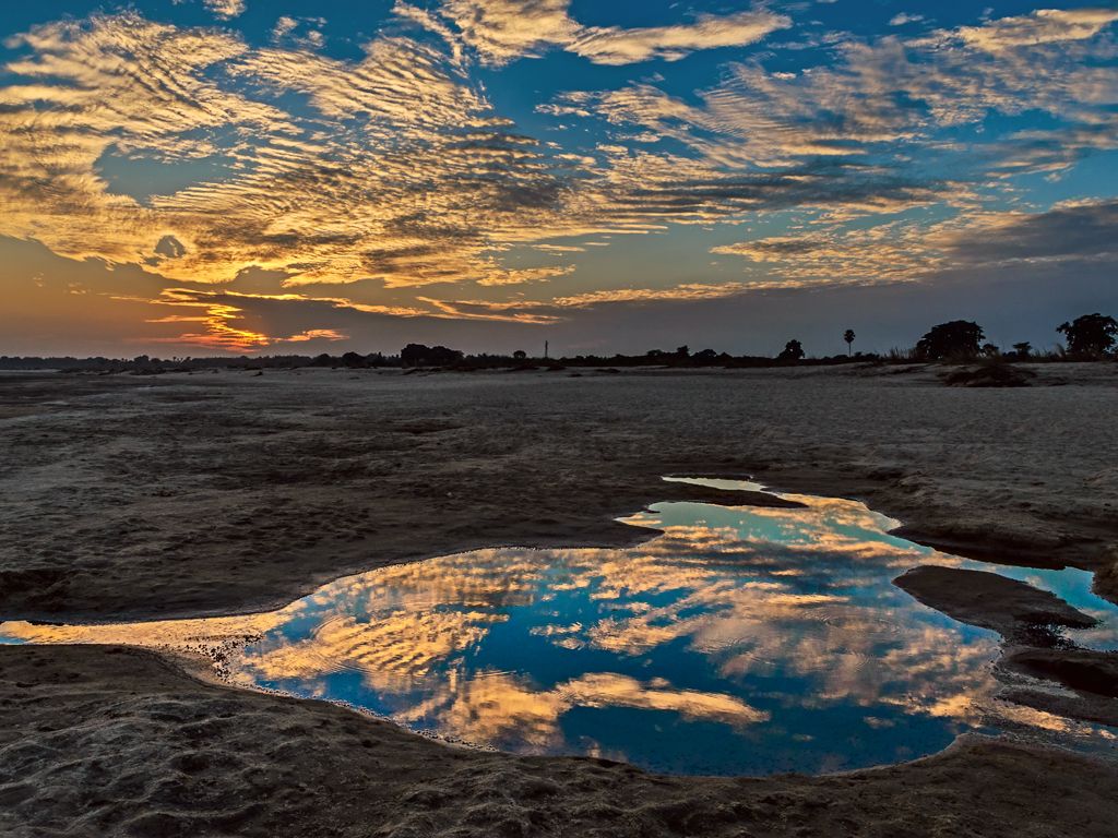Setting sun as seen from the bank of the Damodar river .