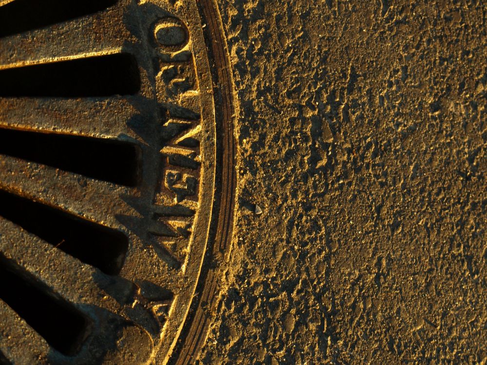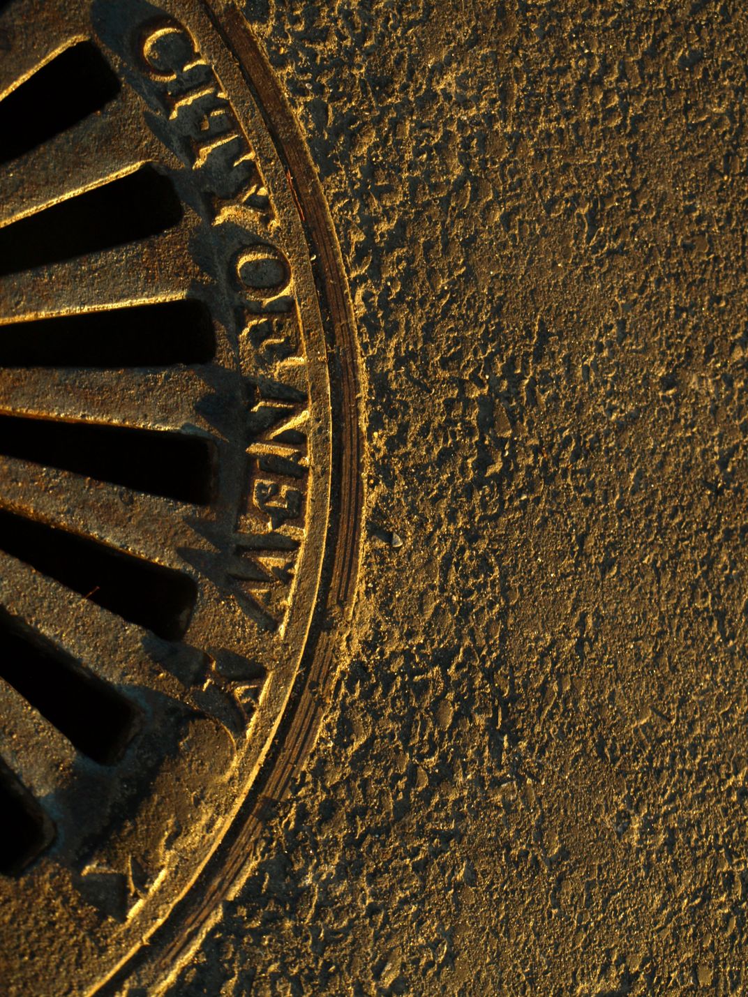 Sewer grate next to the Staten Island Ferry terminal in lower Manhattan, early in the morning of the NYC marathon
