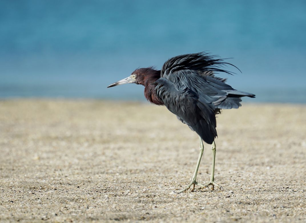 Little Blue Heron shaking it off along the blue waters of Florida's coastline