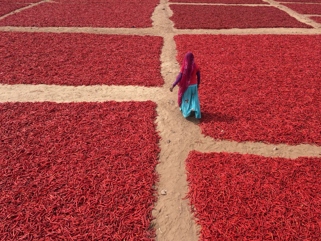 In rajasthan mathania is popular site for red chilli peppers. During winters peoples related to this business do work from morning 9 to 6 pm daily to maintain best quality of chillies . They Dry them in the sun and keenly observe them too .