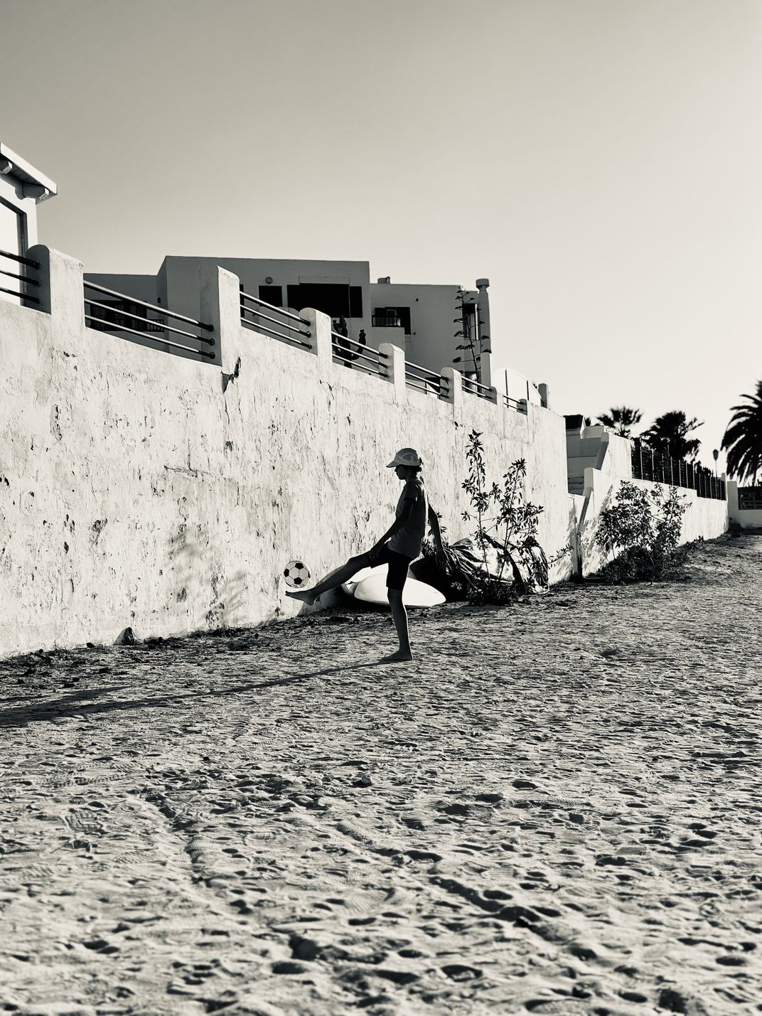On a quiet beach, a child practices football alone, kicking the ball against a sun-washed wall. There is no crowd, no competition, only rhythm, light, and dust rising from the sand. In this solitary moment, the essence of sport reveals itself: discipline born from joy, and motion shaped by silence.
