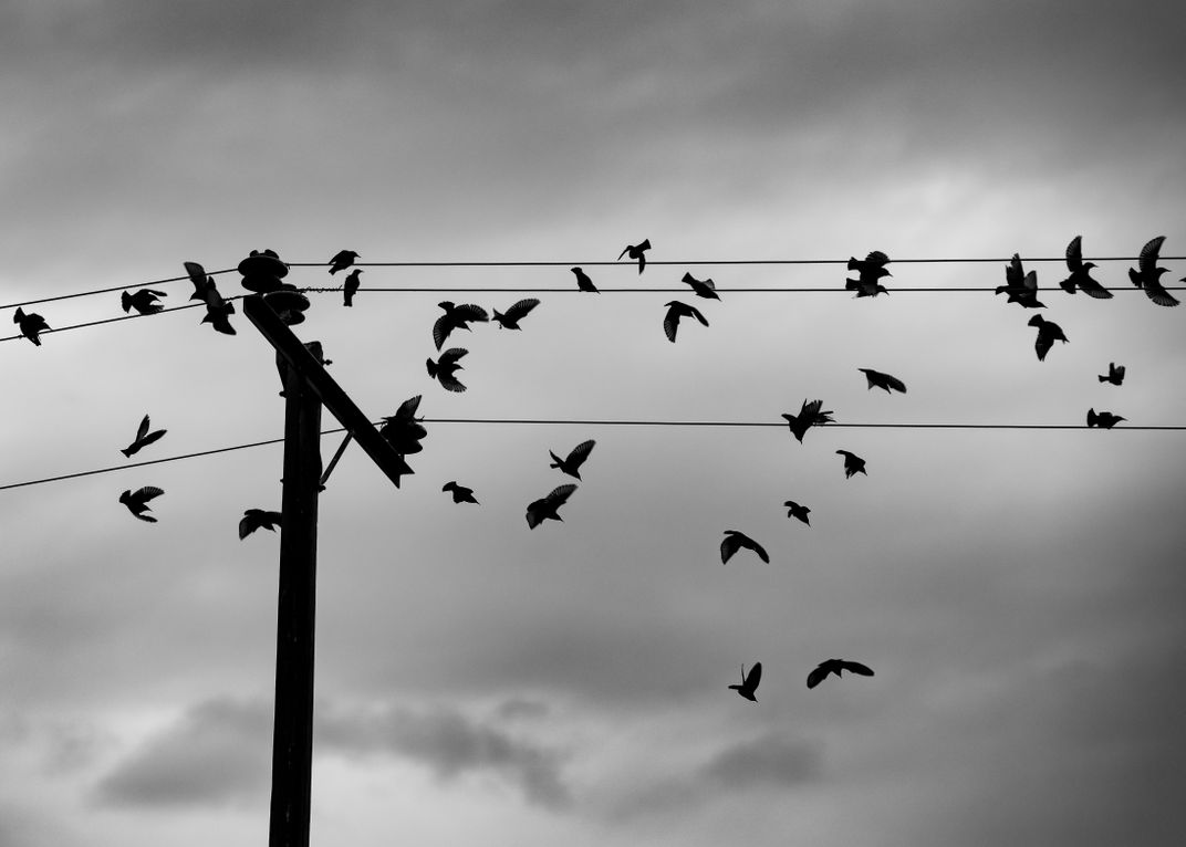 The moment thousands of wings pause on the city’s wires to celebrate flight. Pure silence and beauty captured in black and white.
