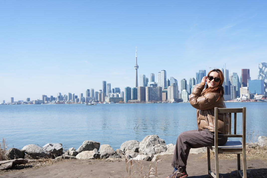 She sat in front of the Toronto skyline, and as I lifted the camera, she turned and smiled. The city behind her was beautiful, but this moment — her turning back — is the one I remember most.