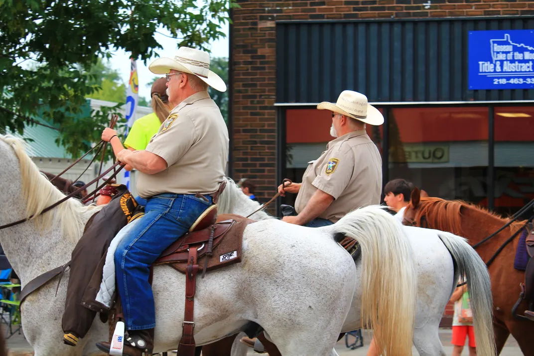 Members of the Sheriff's Mounted Posse of Roseau County Search & Rescue participate in the Roseau (MN) County Fair Parade