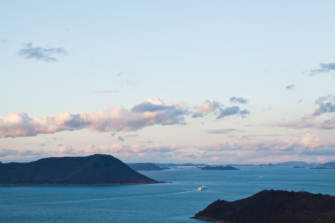 Ship moving through the islands of the Seto Inland Sea.