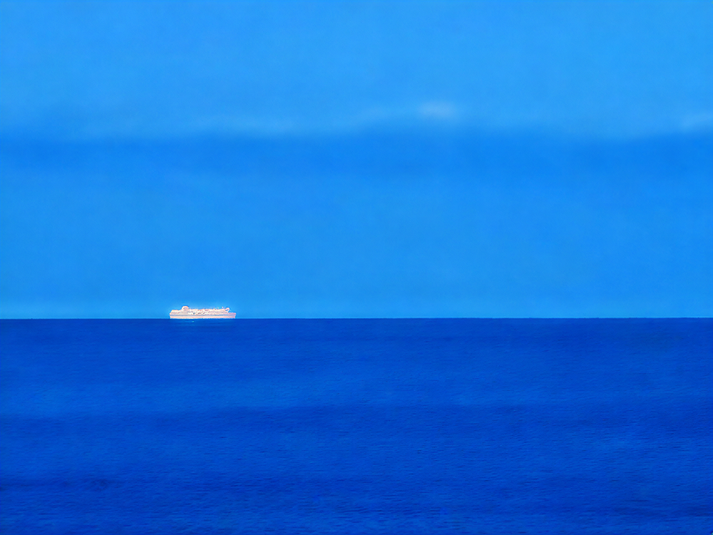 Both tranquil scenes and bustling ones can equally reflect the beauty of the world. On the calm sapphire sea, a ship sails steadily forward—freezing this moment of exquisite charm into a graceful work of art.