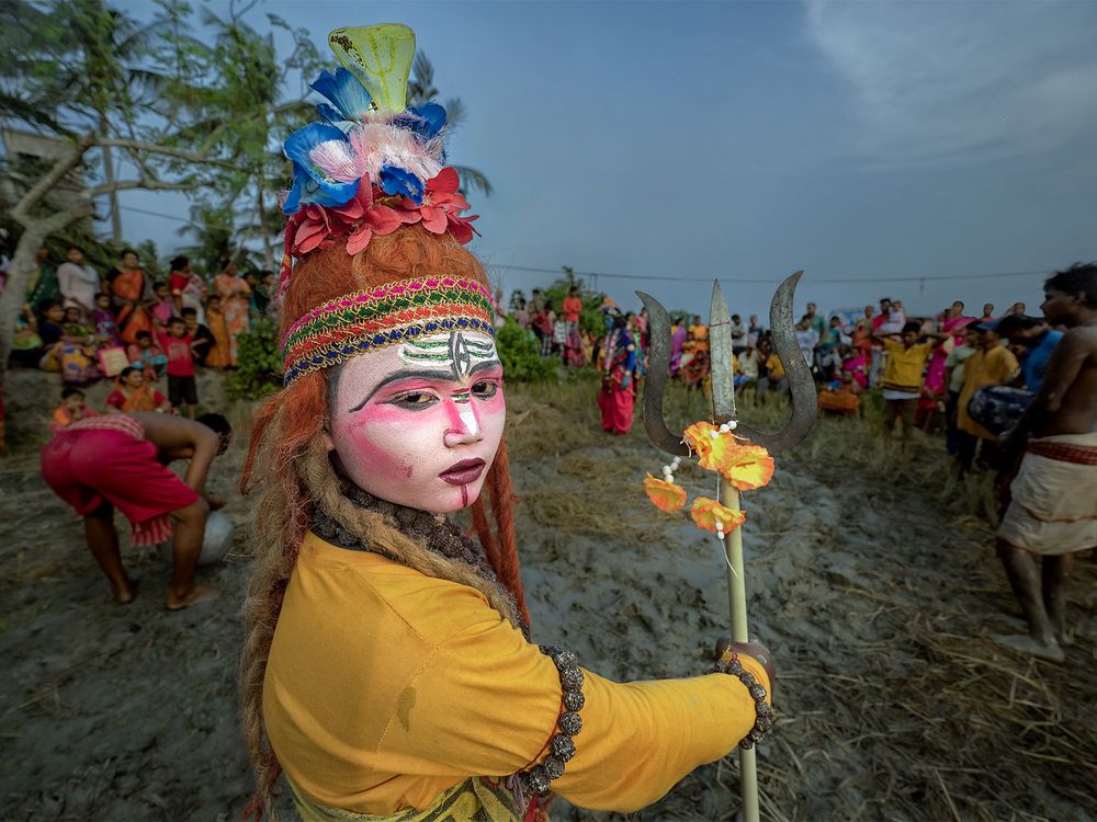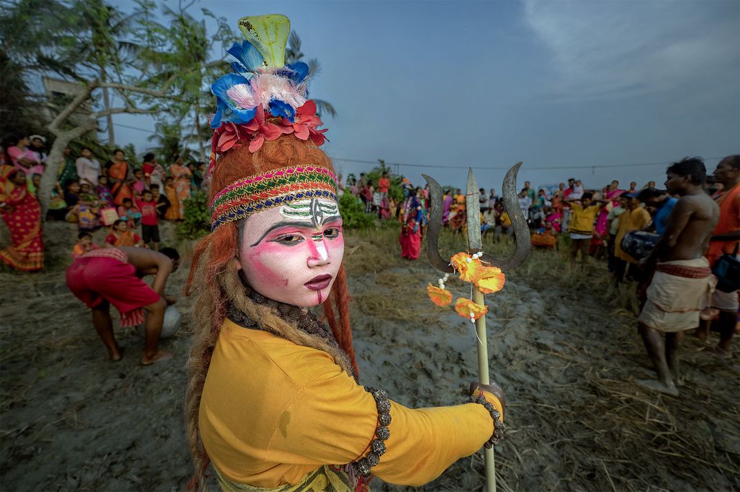 A little village boy has dressed as lord shiva. They are polymorphic. they entertain people in different rural festivals of Bengal. Unfortunately they are reducing in numbers.