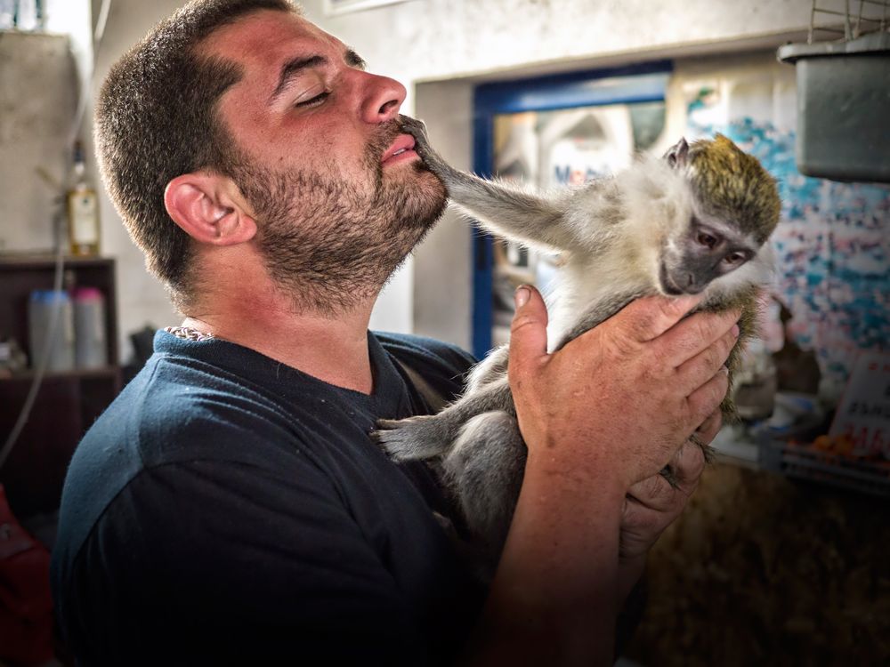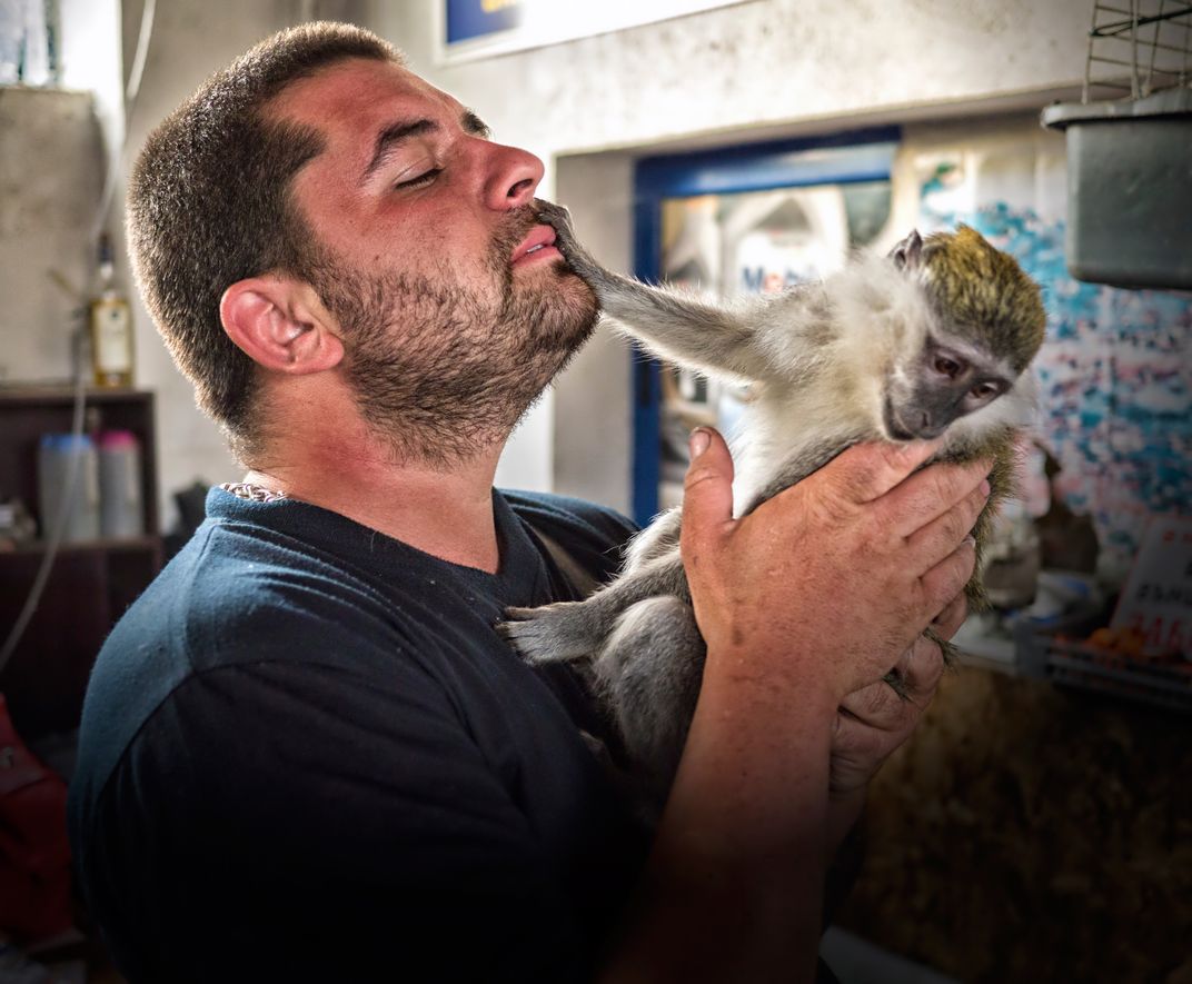 This shop owner and his pet monkey posed for me while I was on a trip to Bulgaria. They made quite an odd couple!