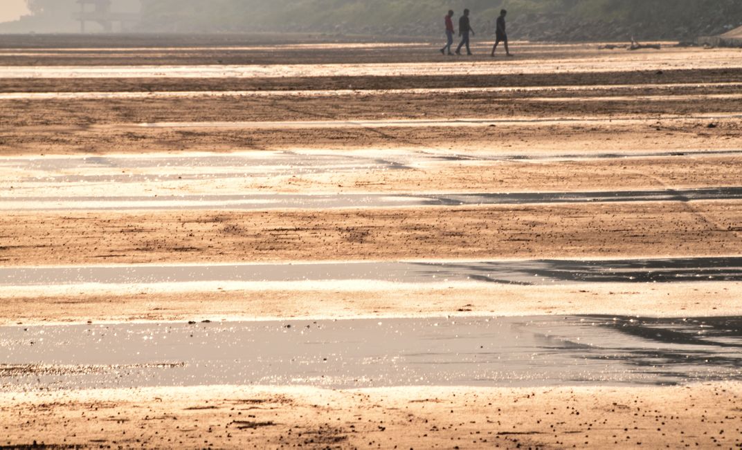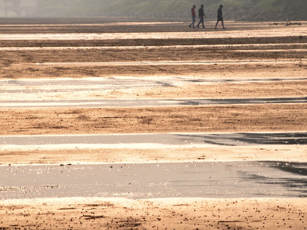 The Photograph was taken in Sea beach of Chandipur, at Balasore Orissa. It was showing the colourful sea beach of afternoon with three people were walking through it.