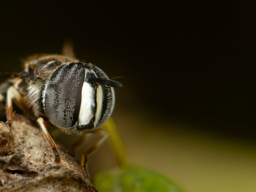 I saw this bee mimicking hoverfly - initially I did mistake it as a bee, but on careful observation, by looking at the eyes, I realized that it was a mimic hoverfly. It had wonderful patterns on the eyes, and I tried to capture that with my macro lens. It was later in the day and the fly was quite active, and hence I had to be quick.