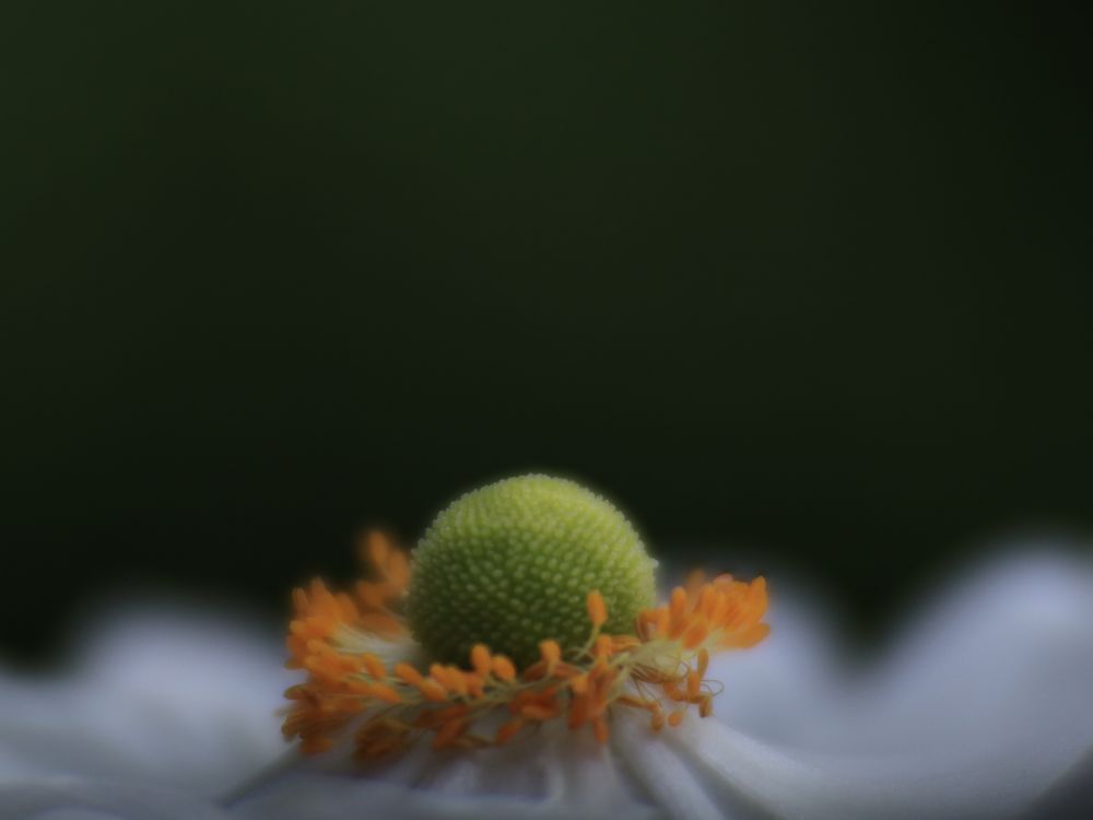 Side view on elegant white anemone flower. This was hard to capture in the wind but I love the unique view!