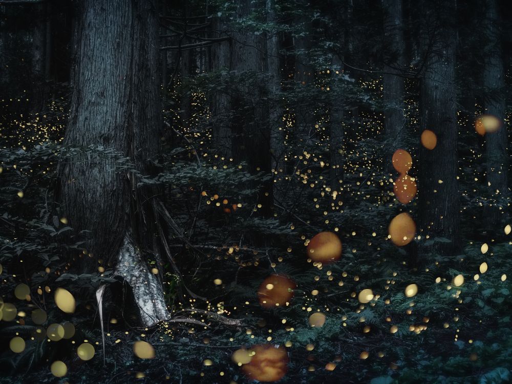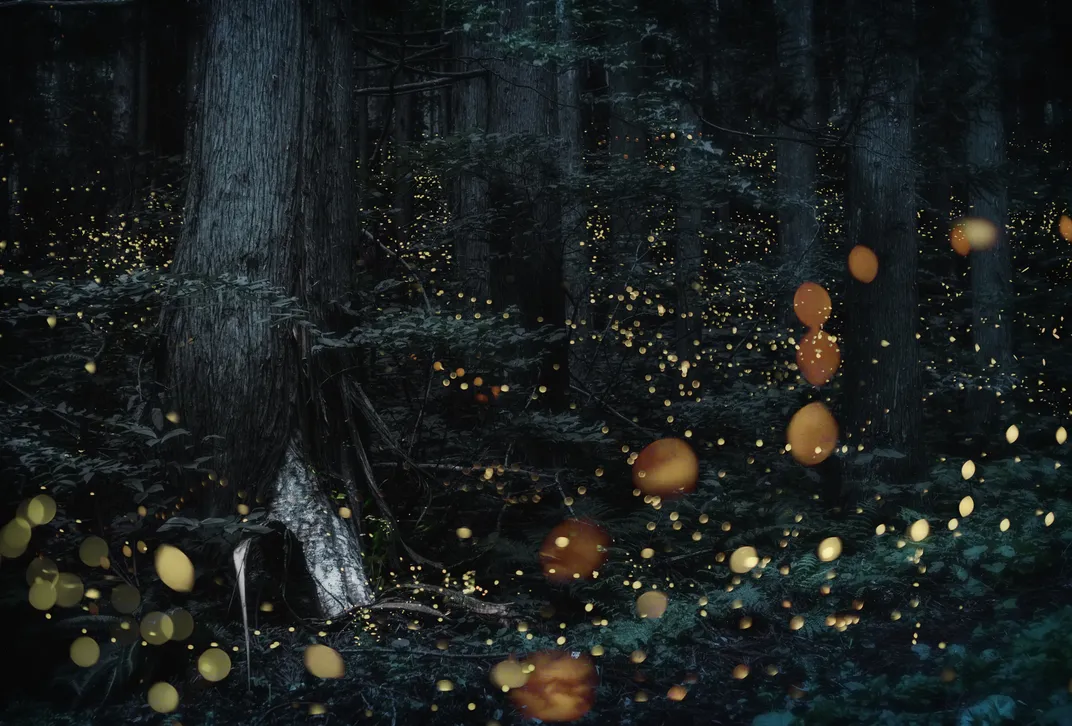 Deep in the forest where no one can enter, wrapped in the dark, you can hear the cry of insects and birds—the whisper of plants brushing against the wind. I feel fear in the darkness of the night. Himebotaru, which is an indigenous firefly species of Japan, fly around the summer forest while repeating a blink of a short time—reminiscent of Christmas illumination. The females cannot fly, only the males. The sight is fantastic enough to forget the awe of the night forest. It is the brightness of life for only ten days of the summer. Forests are living things. They are a precious existence that people should not threaten. I just hope that this forest and its fireflies will be protected. The sun goes down and darkness approaches. The day before, I heard a loud sound that peeled off the bark and the bark with a strong force. I can’t help feeling fear in the darkness of the forest.