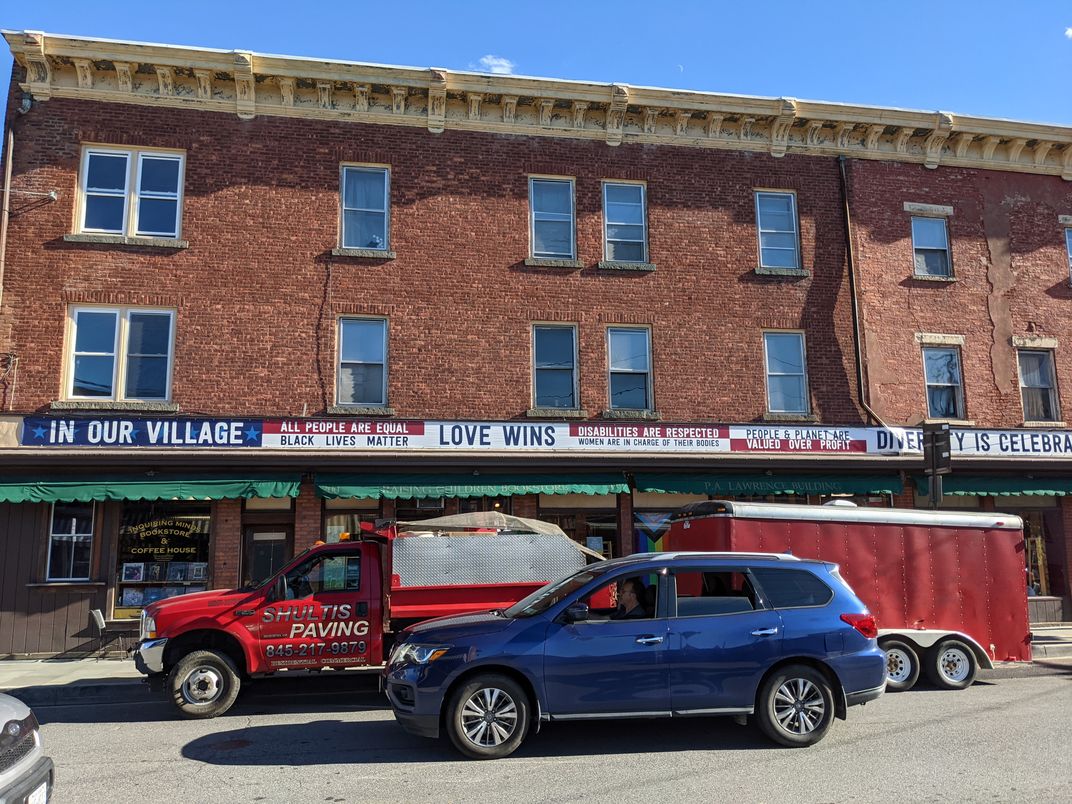 While walking in the Town of Saugerties, above the bookstore’s awnings, I saw the long signage starting with “In Our Village.” It called on people to value positive hopes such as Love, Equality, Respect, Diversity, and Valuing the Planet.