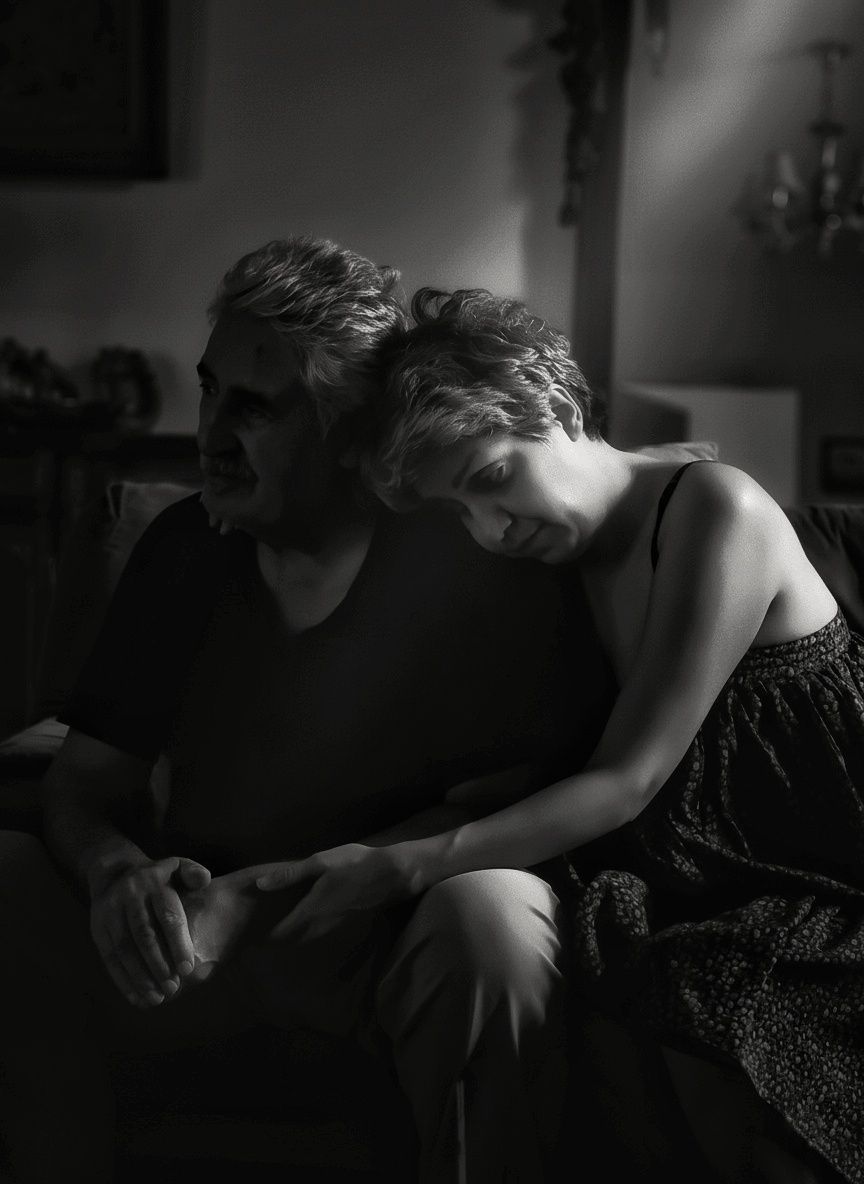 A tender moment of connection between two souls, where silence speaks louder than words. In their embrace, love, endurance, and the quiet power of the human bond are seen.