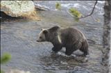 Silverback bear crossing a river in Yellowstone National Park