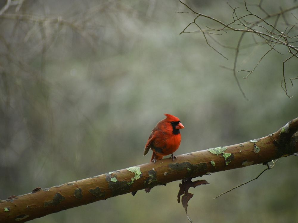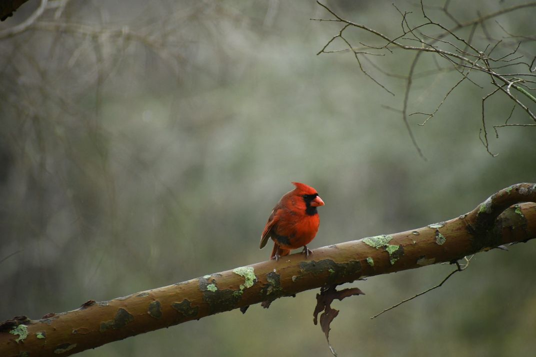 This beautiful Cardinal was singing on a rainy foggy morning right outside my door.