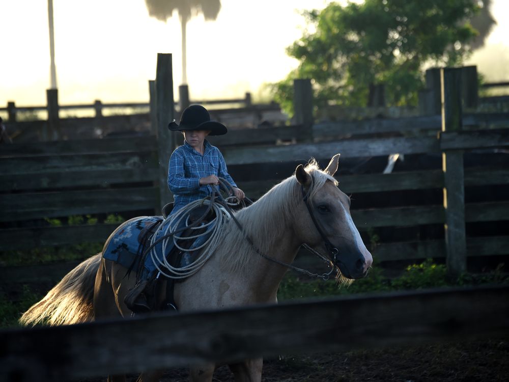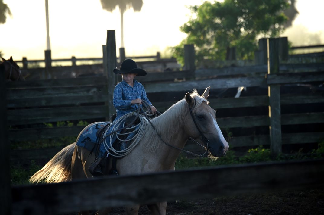 Seven year old Slade Butts, son of well respected Florida cattle man Cab Butts, early morning parting cattle for shipment . Slade day works summers with his father across central Florida having been taught horses and cattle from an early age. He sits and works a horse better than some adults. Buck Daniel Ranch, Okeechobee, FL
