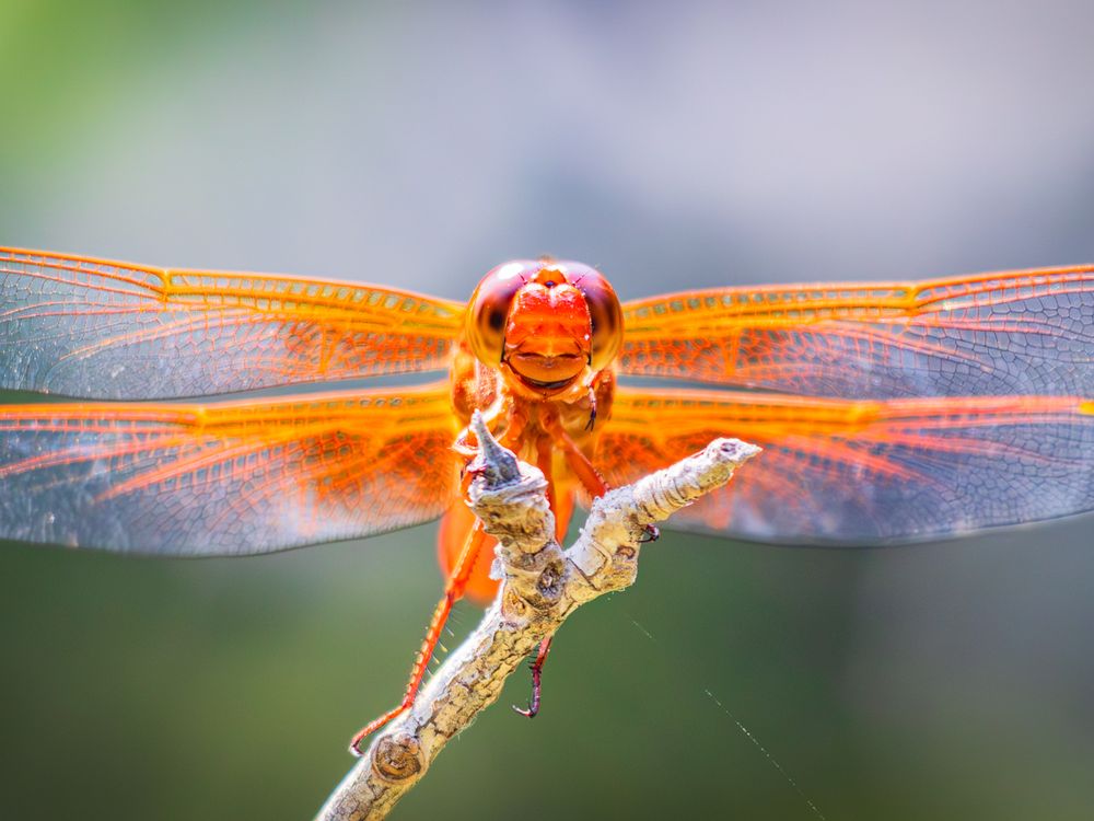 There are certain animals in nature that seem to wear a permanent smile and the dragonfly is one of them. Here this beautiful orange dragonfly seems to be giving his best smile.