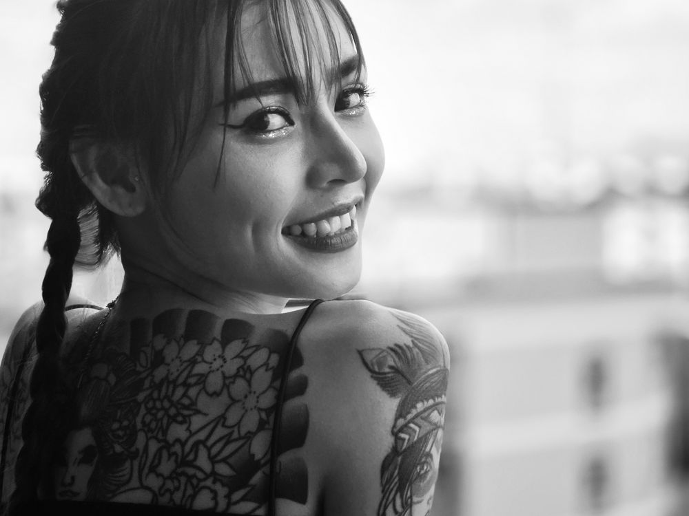 My friend likes to stand on the balcony and take photos. I took a picture of her