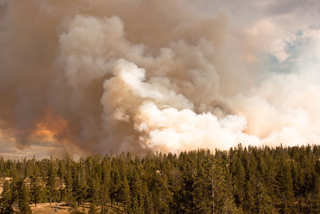 Smoke billows as forest fire rages in Antelope Creek Yellowstone National Park, Wyoming