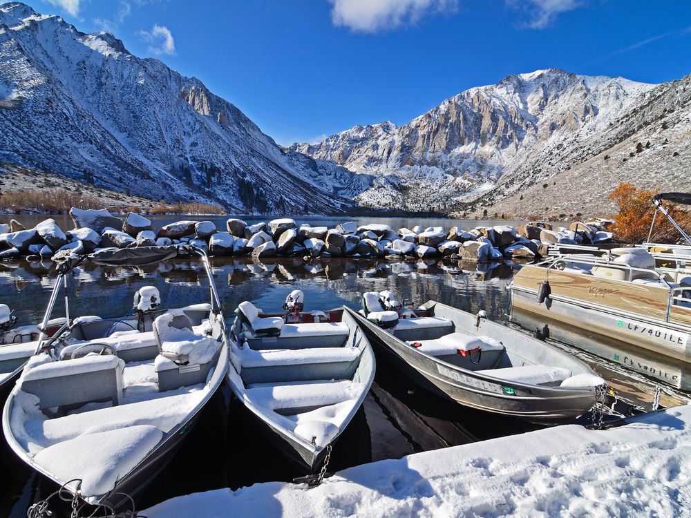 Snow covered boat dock