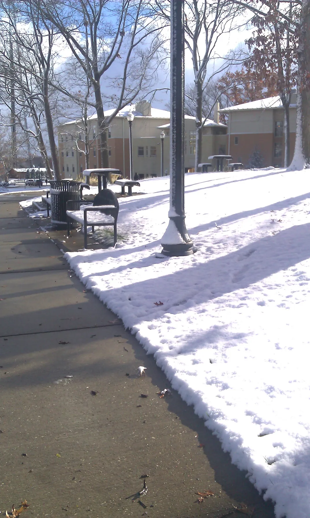 "Snow for the first time" Living in Oakland, California all my life I was bathed in sun light or fog from the coast. When I came to Kent, Ohio I saw snow for the first time. It was one of the most beautiful experiences of my life.