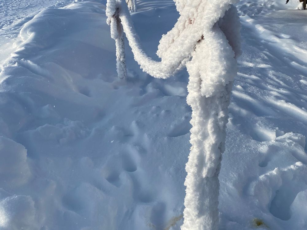 Posts encrusted by the actions of the wind, clouds and fog