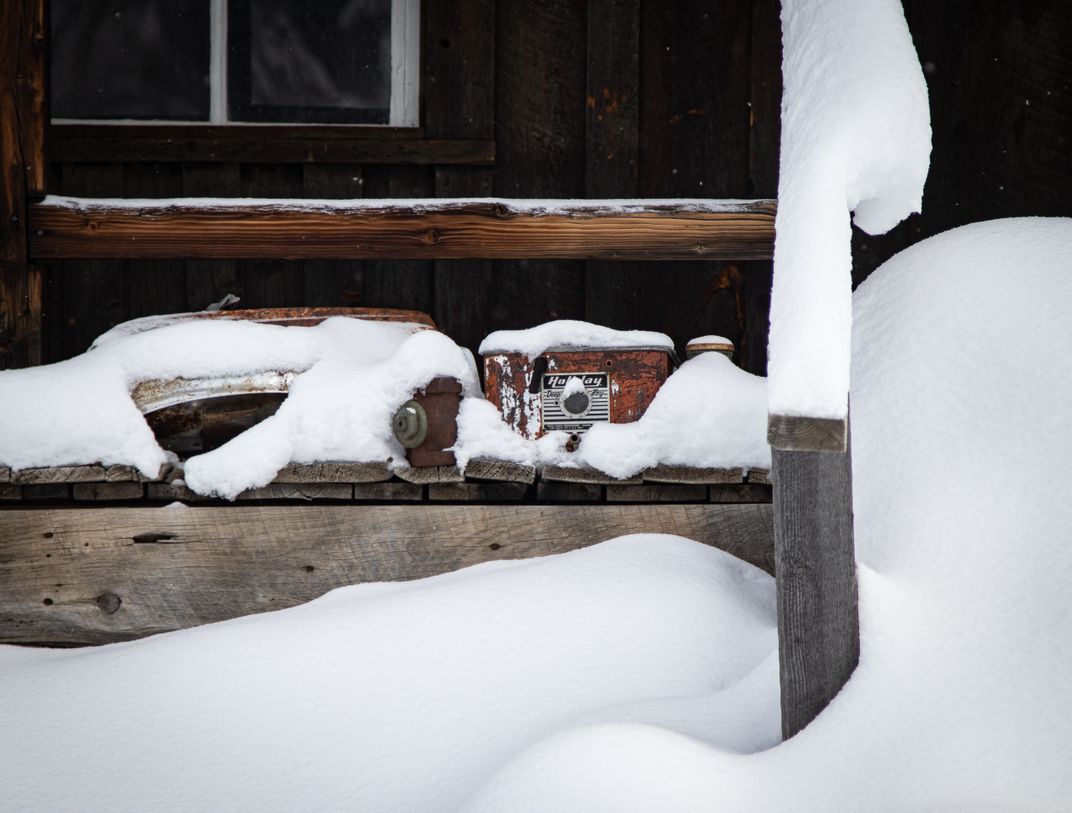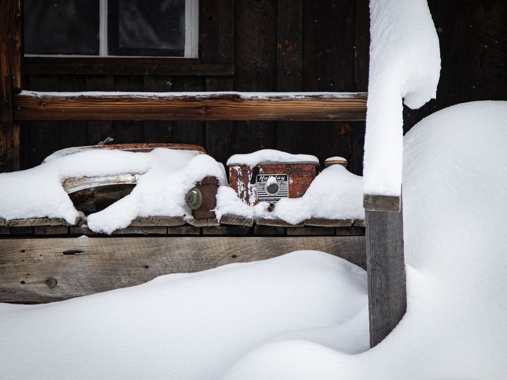 Remnants from Nederland's mining history present themselves beneath thick blankets of snow.