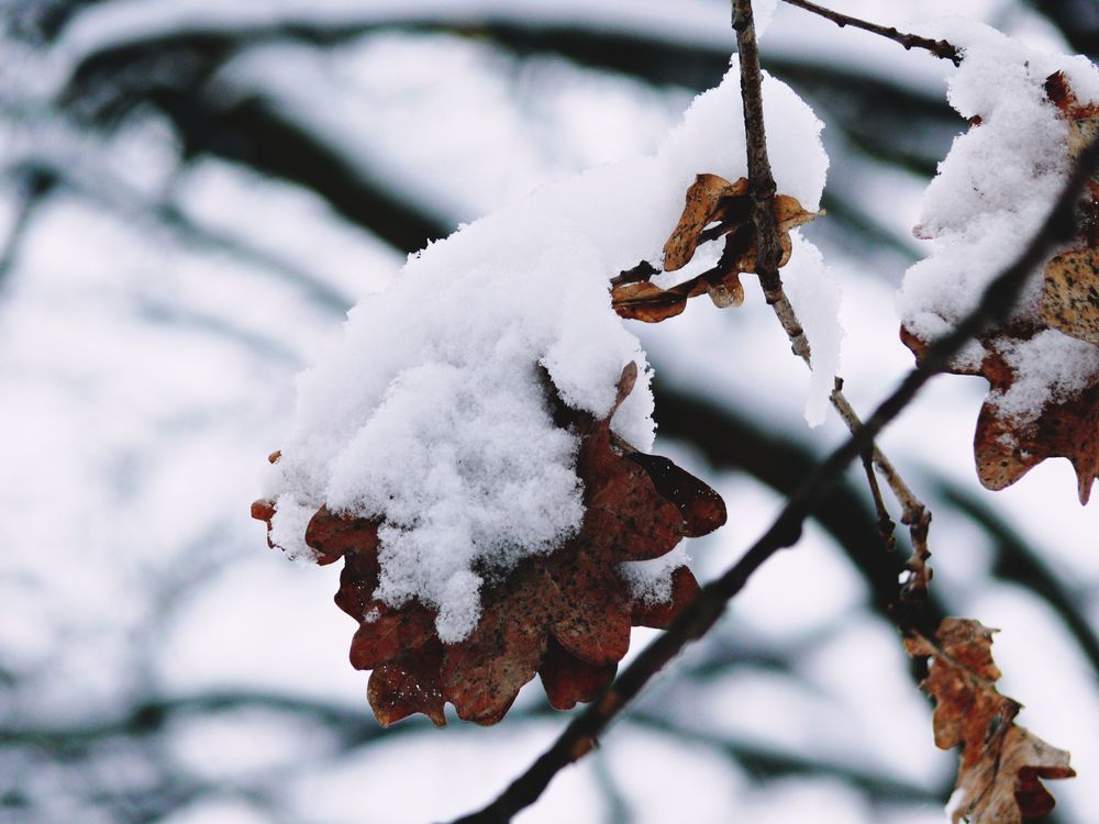 Snow On Dried Plant During Winter