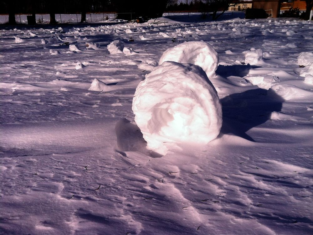 The photo shows snow rolls created by high winds and blowing during a snow storm.