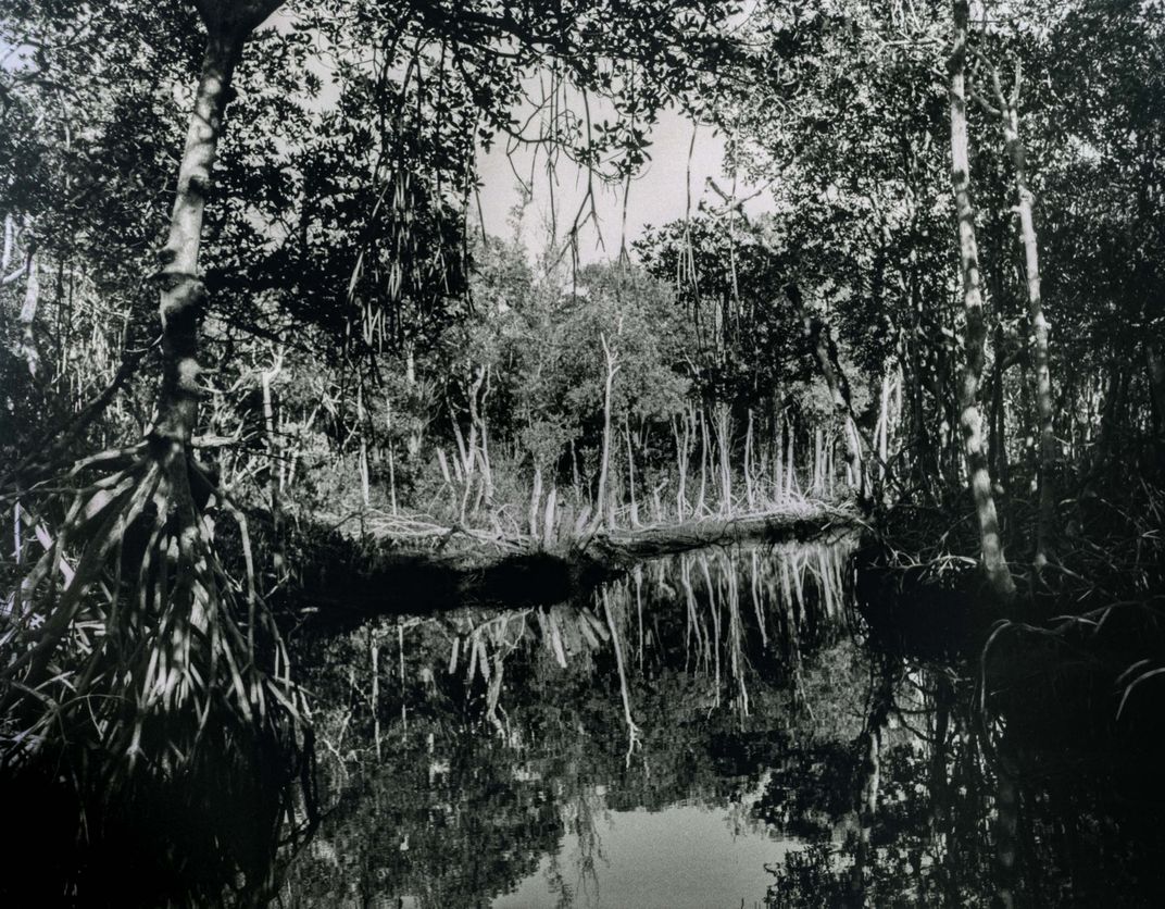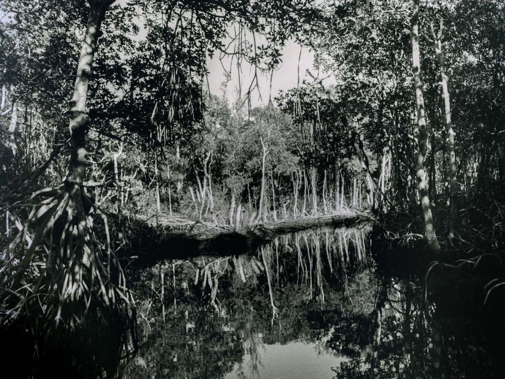 I was in an airboat in the Everglades - my first time in a National Park. I was fascinated by the mangroves, with their exuberant aerial roots and the shallow, calm water that mirrored its surroundings.