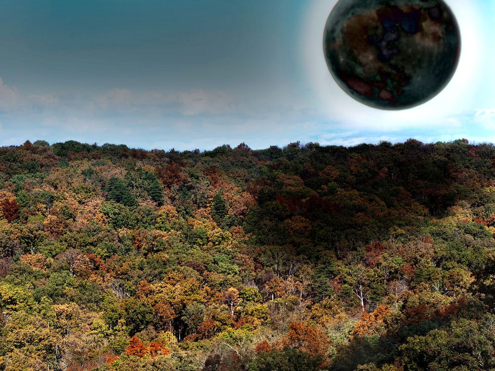 This picture was taken in 2016 during the fall. I also took a picture of a full moon and edited it into the image to portray a Solar Eclipse.