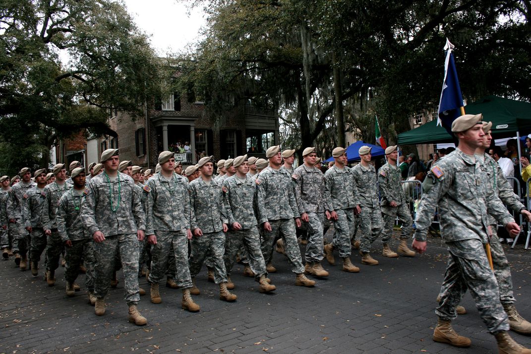 Soldiers marching in parade.