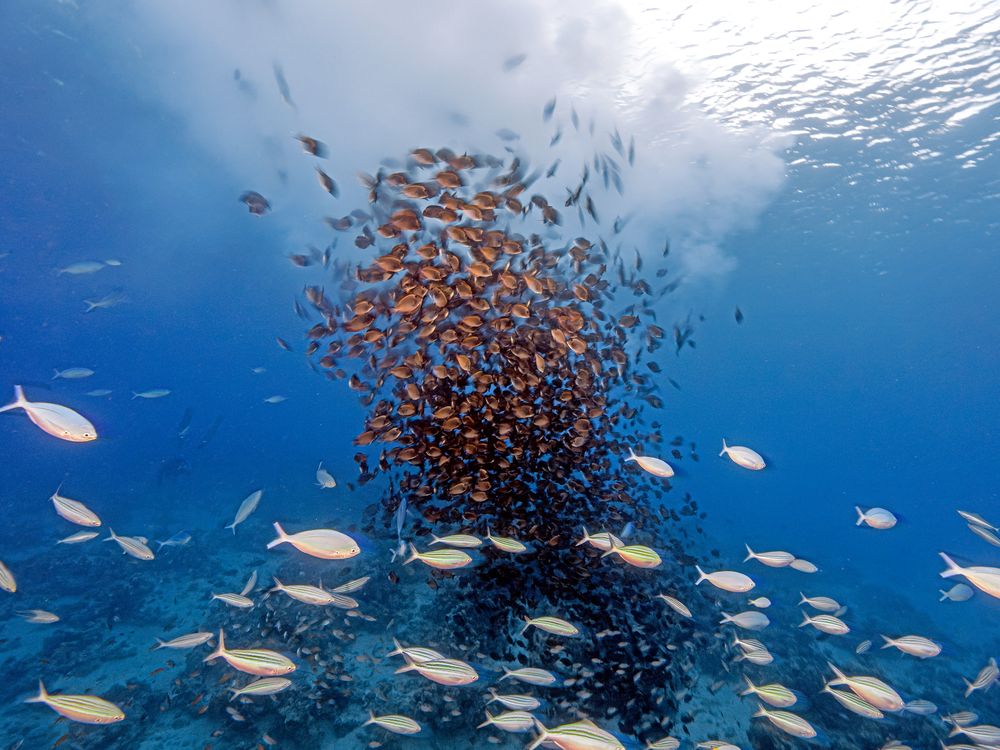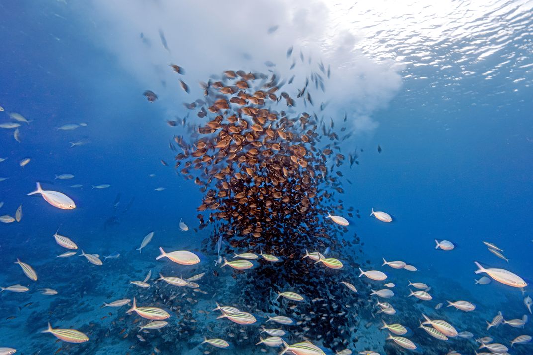 For a few weeks each year, brown surgeonfish aggregate every evening in large numbers at the same locations along several sites in the northern Red Sea to reproduce. They engage in the spawning activity itself just before sunset with small groups “jumping” up together and spawning altogether.