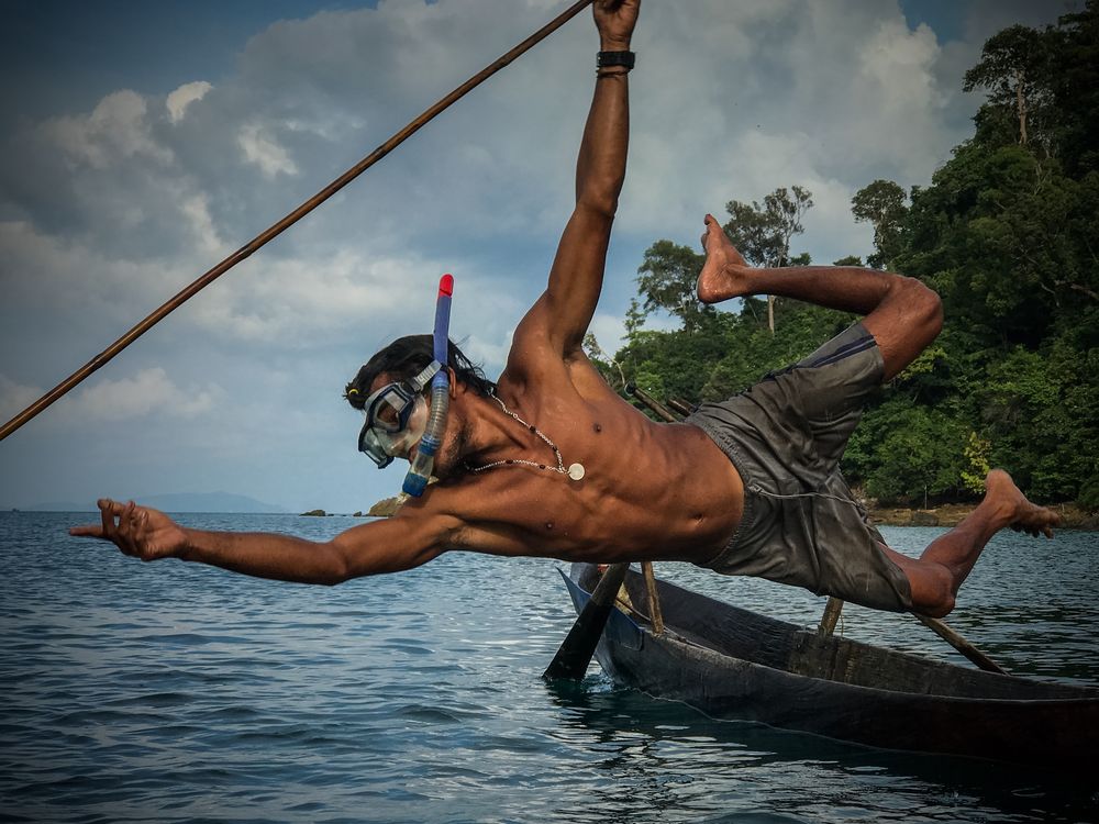 The Moken or Sea Gypsies of Myanmar have traditionally dived to spearfish. This young man was diving to demonstrate his technique.