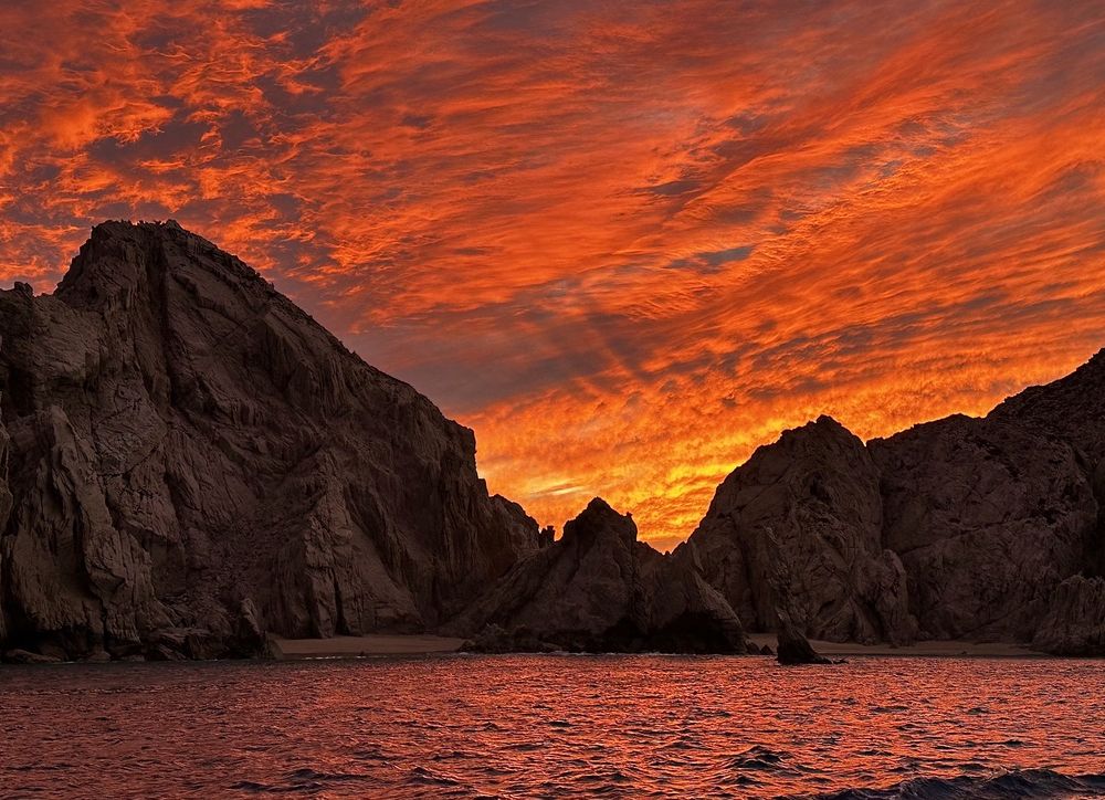 Spectacular Sunset over Lovers Beach in Cabo San Lucas, Mexico