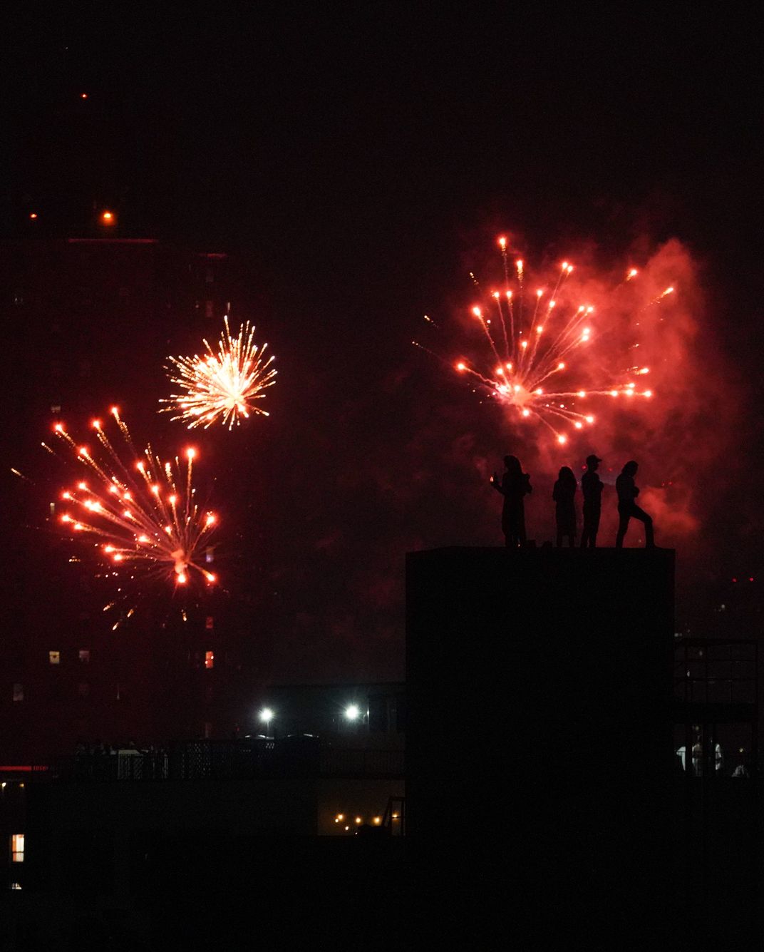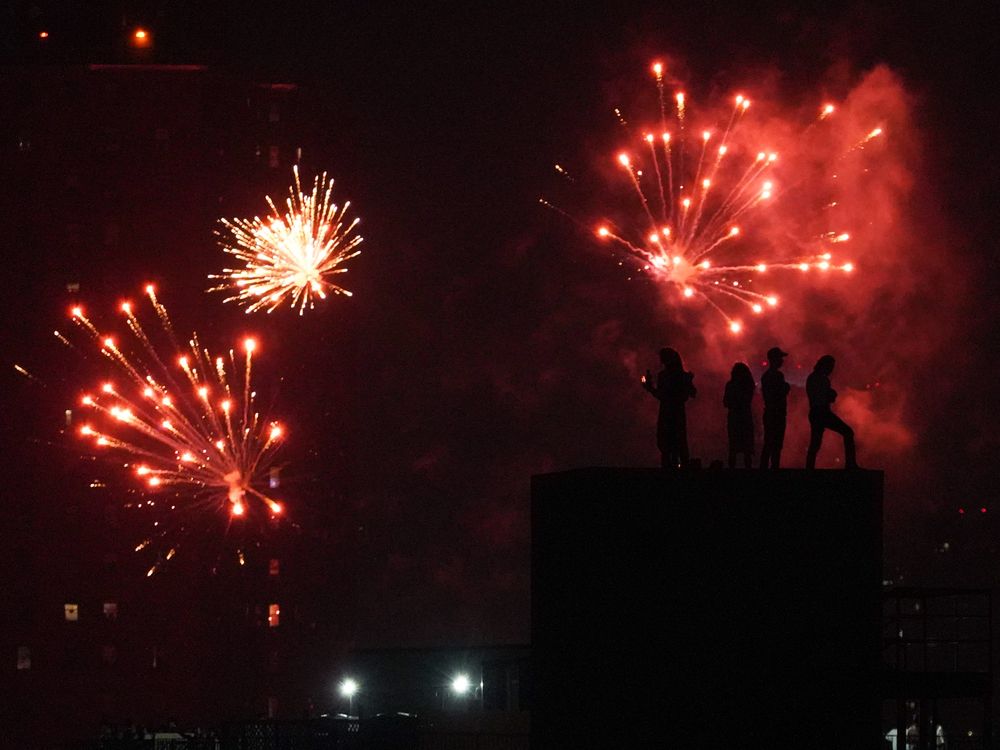 Spectators enjoying 4th of July fireworks over Brooklyn.