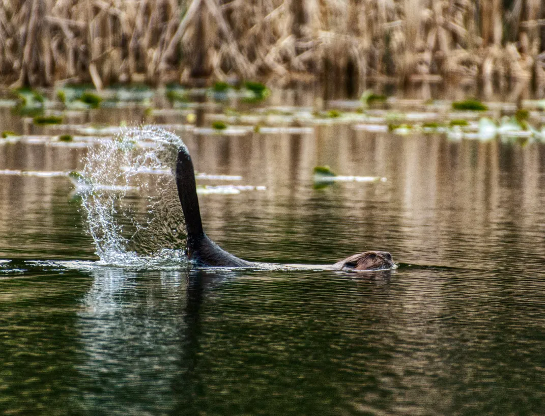 The photo is of a beaver that was tired of my presence. The beaver is splash its tail on the water as a warning for others.