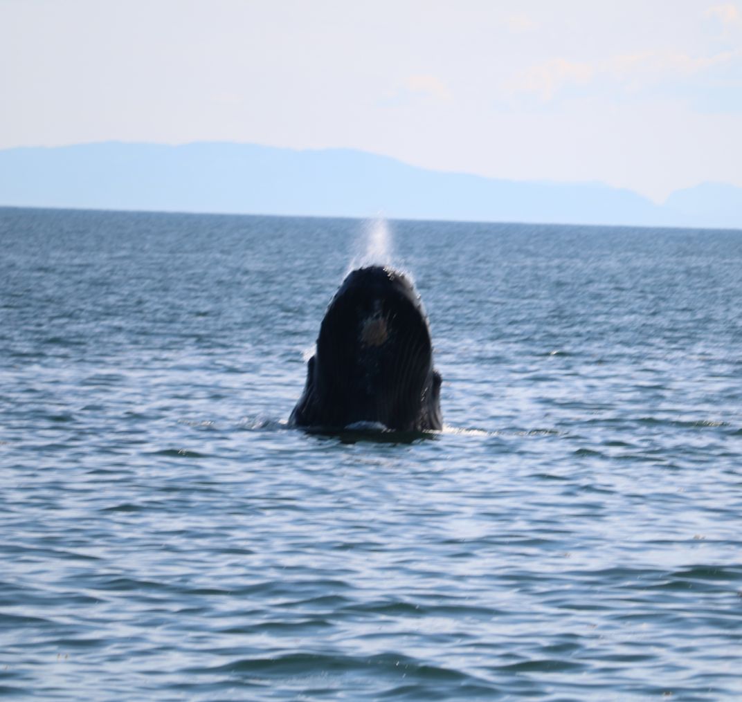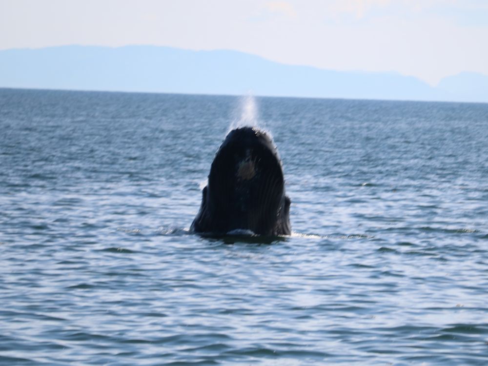 A spyhopping humpback whale in the Stephens Passage south of Juneau, Alaska. There were several whales frolicking as our cruise ship, the David B,passed through. I was able to get this whale taking a peek above the surface. The behavior is called "spyhopping".