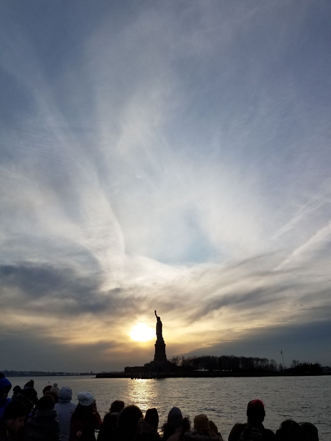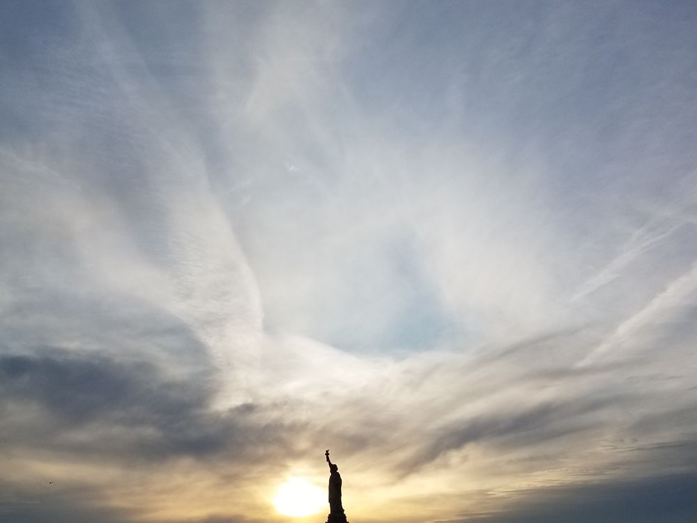 The Liberty statue stand firm in every season. Even though the sun goes down, the statue will stand firm. It was in the winter time when I took this picture.