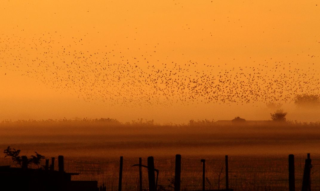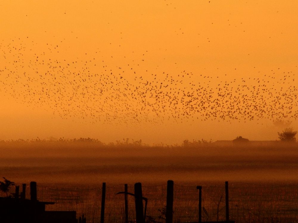 starlings create captivating shapes in the morning sky