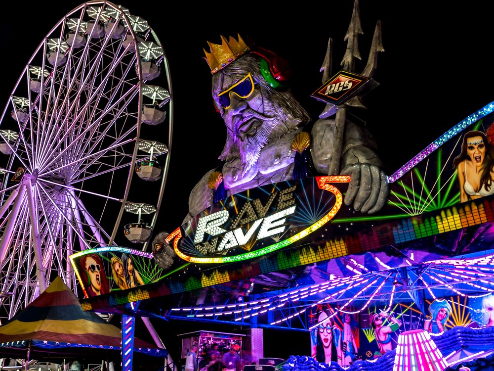 I was looking to convey the drama and visual splendor of a State Fair at night, and when I saw the Big Wheel and this Rave Guy, I knew I had my shot.