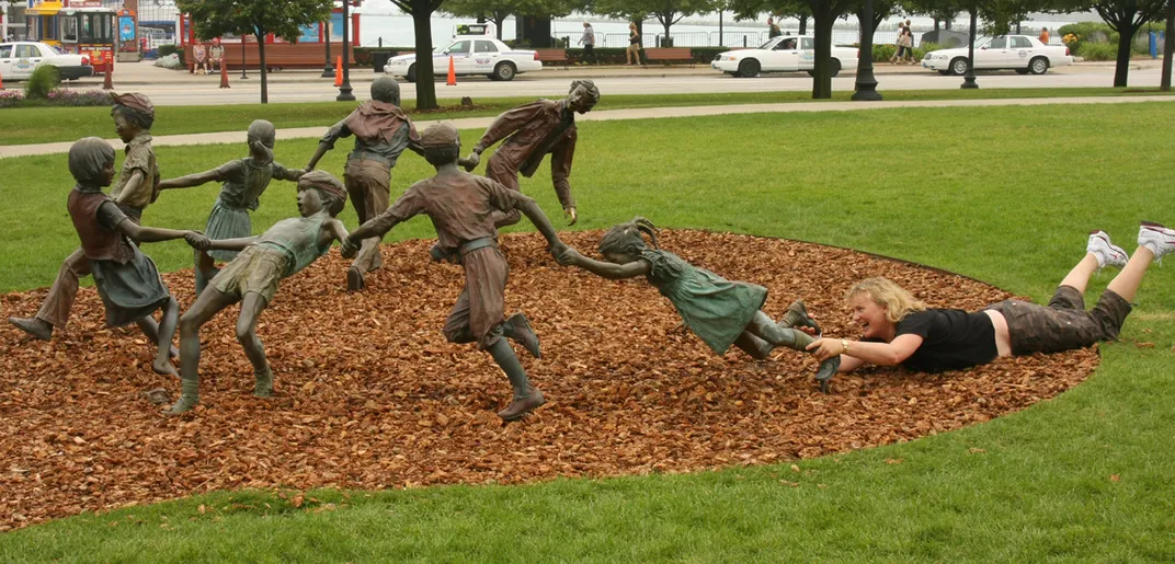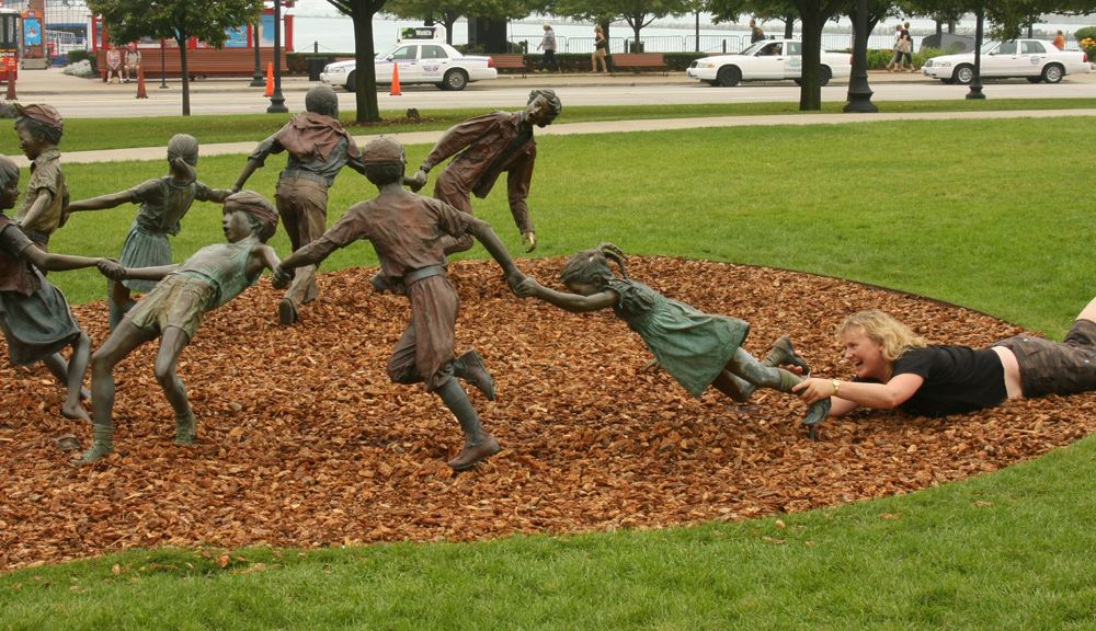 Statue of kids, and a kid at heart, in Chicago