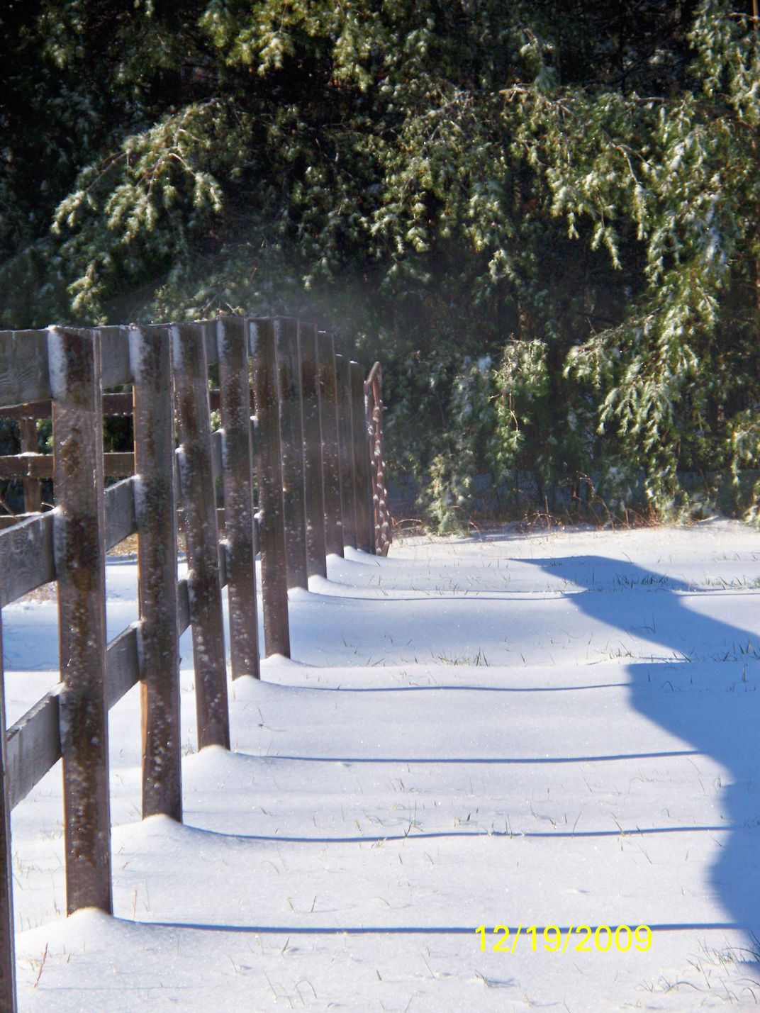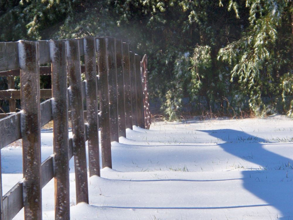 Steam off pasture fence in winter.