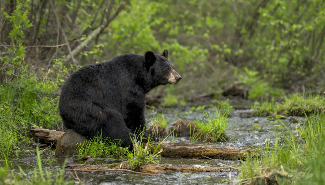 The Wild speaks not in words, but in moments like this. This black bear walked through the stream and seemingly wanted to simply stop and sit for a moment .